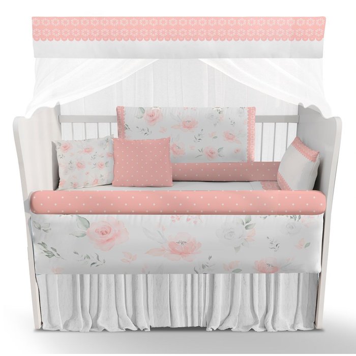 Kit Berço Enxoval de Bebê Flores Rosa Menina