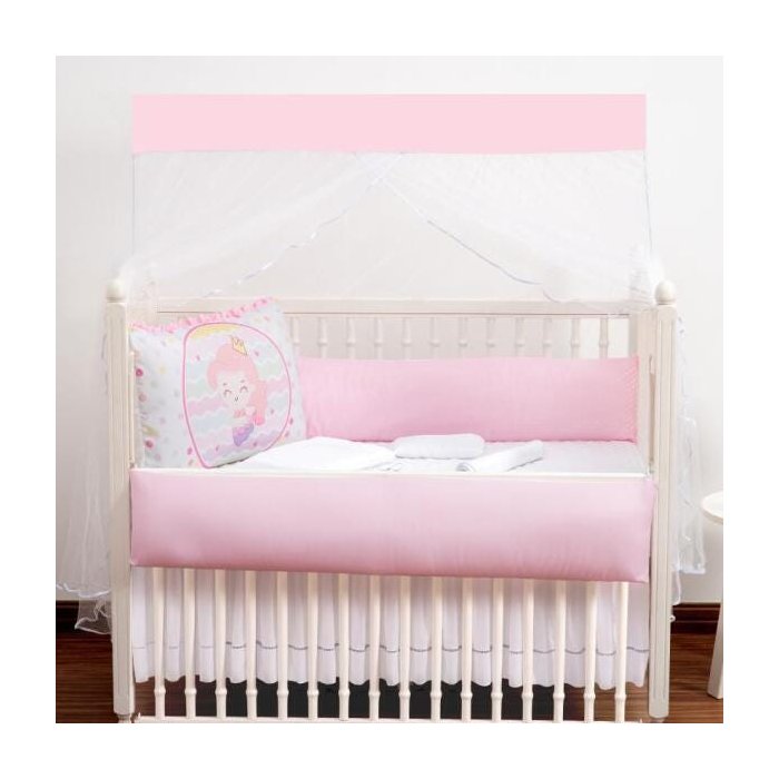 Composto por 9 peças ( + naninha), perfeito para deixar o berço do seu bebê mais lindo e aconchegante, possuí mosquiteiro protegendo assim seu bebê de mosquitos e pernilongos. As peças possuem fitas para prender no berço. Detalhe estampado.