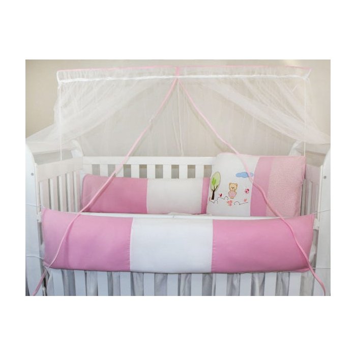 Os kits de berço da linha kids foram desenvolvidos para mamães de bom gosto que não querem gastar muito. Confeccionado em microfibra, possui um design bonito e em sua cabeceira e nas laterais, possuí zíper em toda sua extensão, facilitando o manuseio do enchimento na hora da retirada para lavagem. O Edredom possui uma camada de manta acrílica em seu interior para manter seu bebê sempre aquecido. Lençol de baixo com elástico em toda sua extensão, o que proporciona maior firmeza depois de colocado. Seu Mosquiteiro possui tule para proteger seu bebê durante o sono.