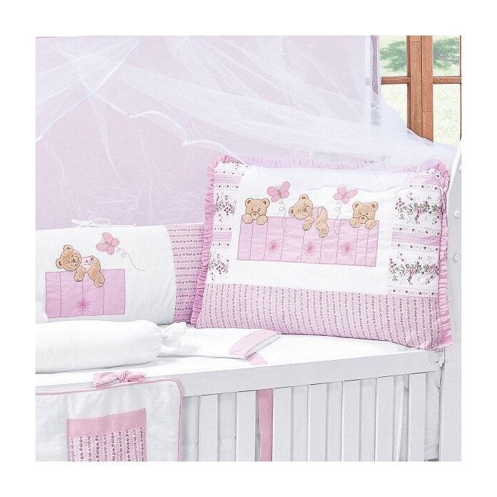 Kit Berço Menina Padrão Americano Ursinhos 10 Peças 100% Algodão
