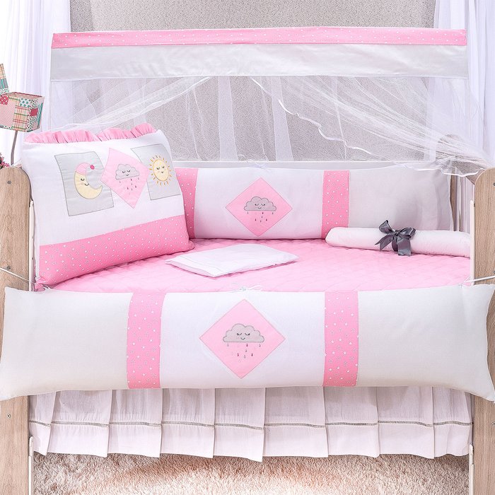 Kit Berço Menina Rosa Lunar Americano 100% Algodão 10 Peças