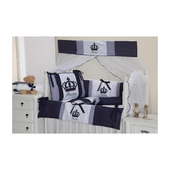 Kit Berço Menino Imperial Azul Marinho Pingo de Gente 9 Peças - Azul Marinho - Americano