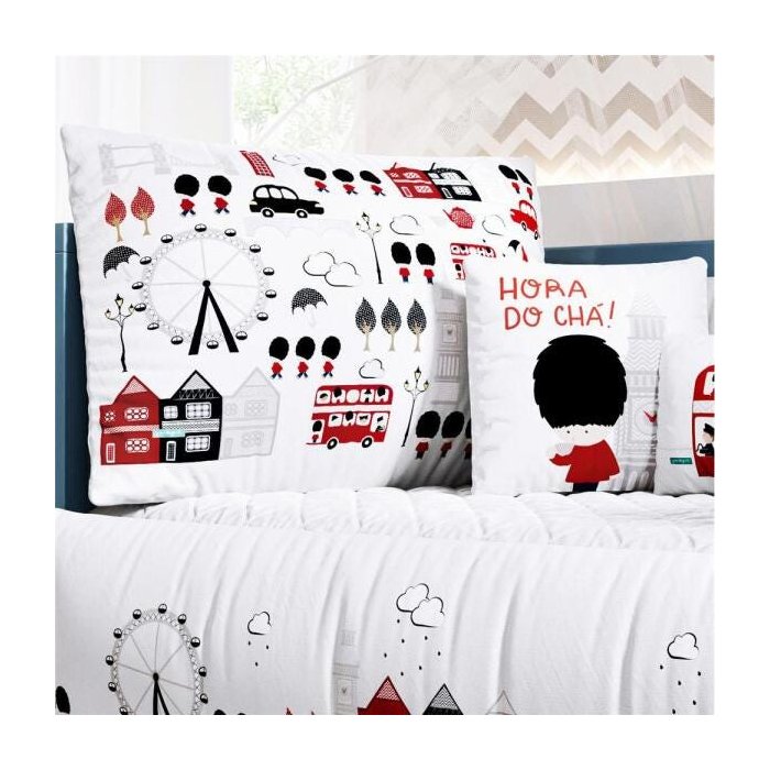 • Laterais protetoras com estampa inspirada na cidade de Londres