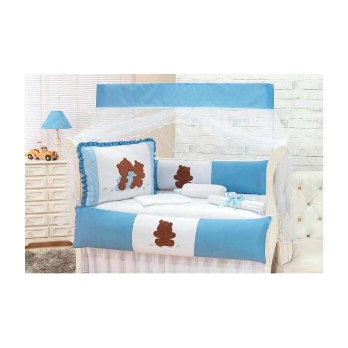 Kit Berço Menino Ursinhos Carinhosos Azul 10 Peças