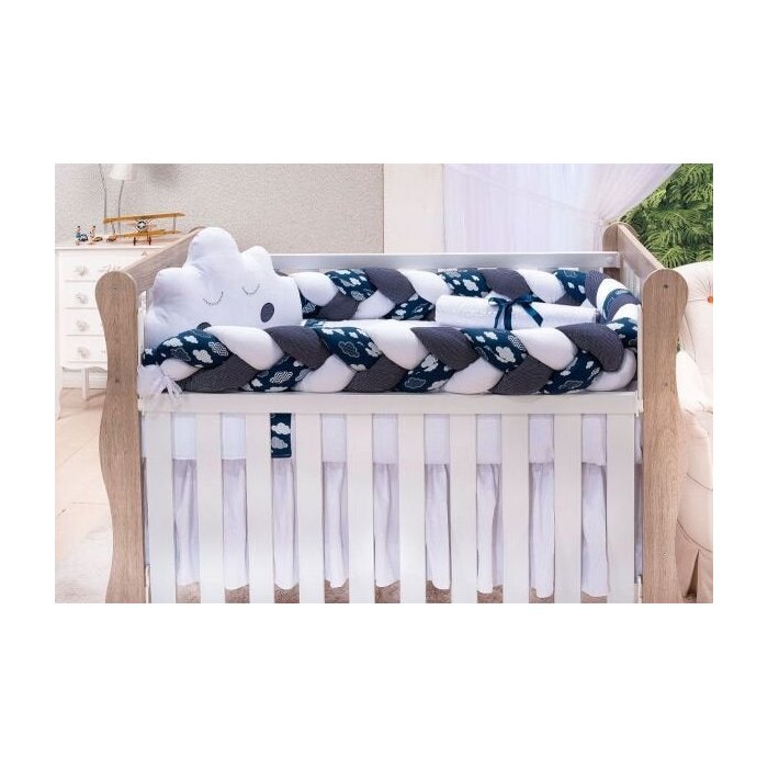 Kit Berço Nuvem Azul Marinho Trançado 9 Peças