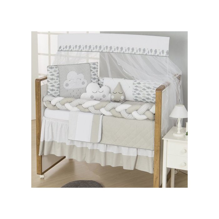 Kit Berço Padrão Americano e Nacional 10pçs Trança Nuvem Menino Menina Cinza