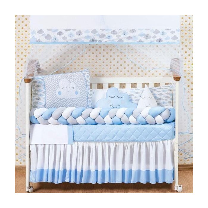 Kit Berço Para Menino Nuvem Trança 12 Peças