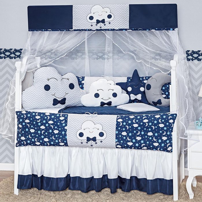 Kit Berço Proteção Duas Laterais 12p Menino Marinho Formato
