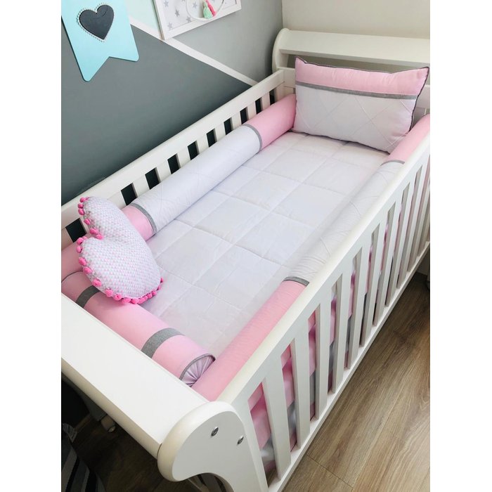 Kit Berço Rolinho 9pcs Marokita Baby Kr999 ROSA/CINZA UN ROSA/CINZA