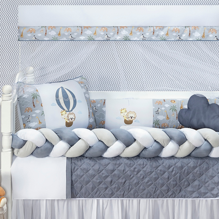 Kit Berço Safari Menino 11 Peças Estampado de Bichinhos + Naninha:cinza