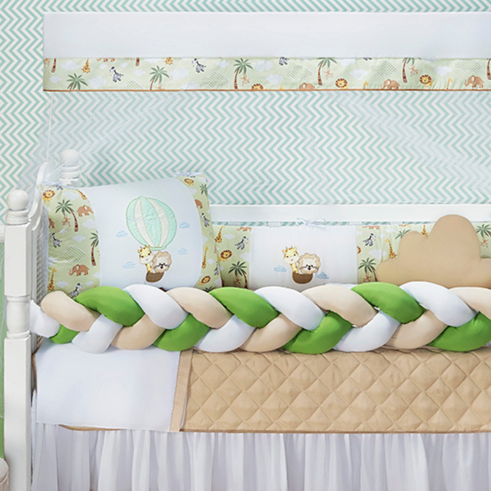 Nosso Kit Berço Safari para Menino vem com 11 peças completas, estampa fofa de bichinhos, acabamento impecável e ainda acompanha uma naninha linda! Ideal para quem busca conforto, proteção e um toque especial na decoração do berço.