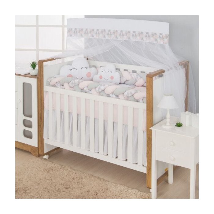 Kit Berço Trança 100% Algodão Losango Rosa
