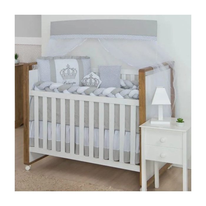 Kit Berço Trança 11 peças Coroa Cinza