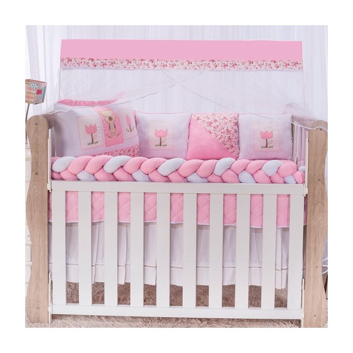 Este kit é uma opção moderna e sofisticada para as mamães que querem sair do tradicional e deixar o enxoval da sua bebê elegante. O diferencial deste kit esta em seus protetores laterais, sendo uma no modelo trançado e a outra composta por quatro lindas almofadinhas. Este kit conta com 12 peças funcionais, que irão proporcionar cuidado e proteção para sua bebê. Confeccionado em tecido macio para soninhos ainda mais aconchegantes.