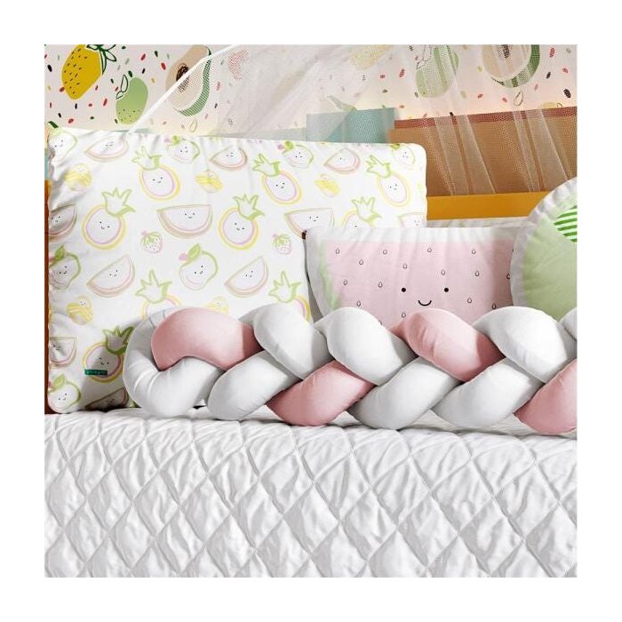 O Kit Berço Trança Frutinhas Coloridas traz estampas exclusivas em alta definição para compor a decoração do quarto de bebê com aconchego e originalidade. Esse enxoval com cores suaves é uma ótima escolha para receber a nova menina da família com muito amor e um toque de criativo. Melancias,bananinhas, abacaxis e maçãs enfeitam a cabeceira e a lateral com muita docilidade Confira os detalhes e encante-se com esse produto original Grão de Gente: