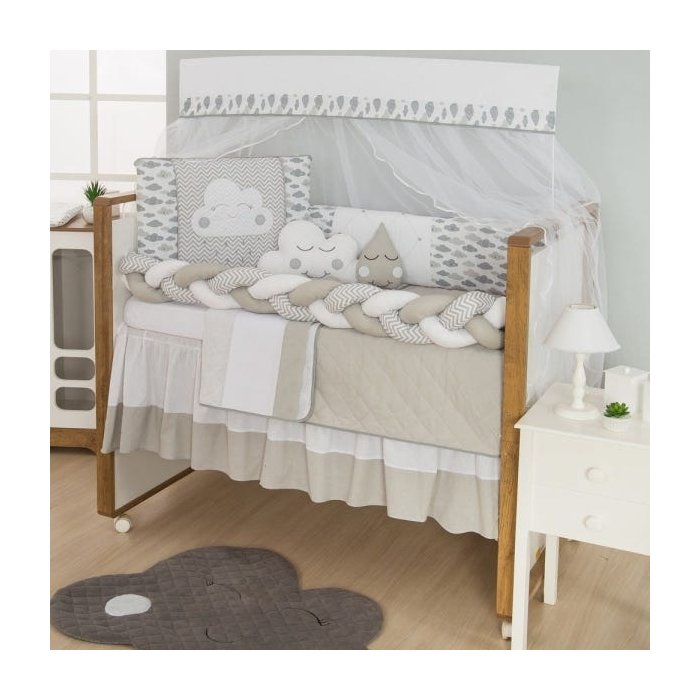 Kit Berço Trança Menino Menina Cinza Chuva De Amor 10 Peças