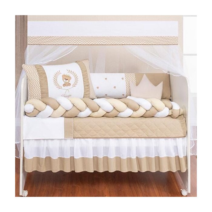 Kit Berço Trançado Menino 12 Peças Saia Box Ursinho Ted Bege Bege