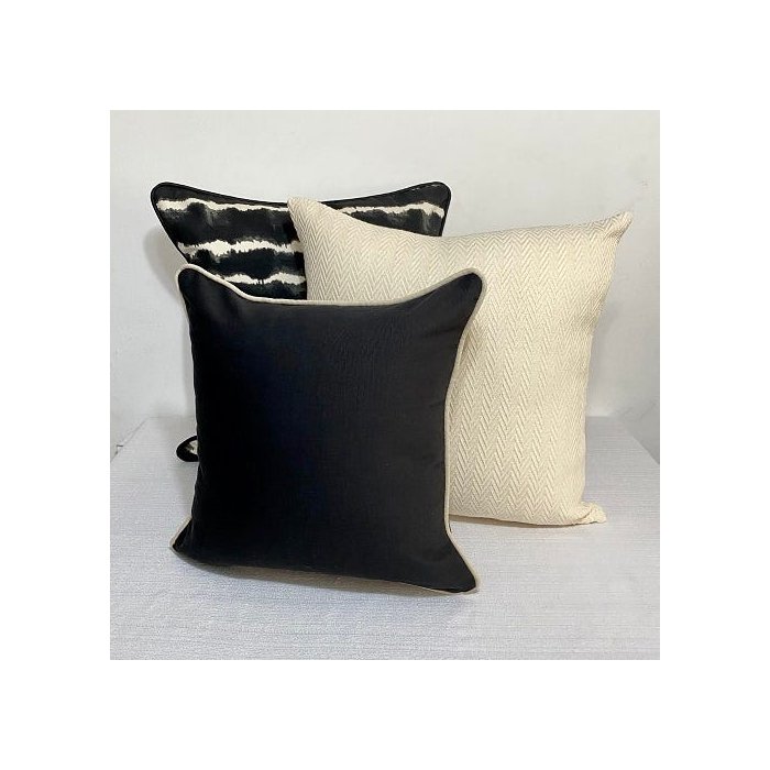 01 capa 40cm x 40cm cotone preto com vivo areia.