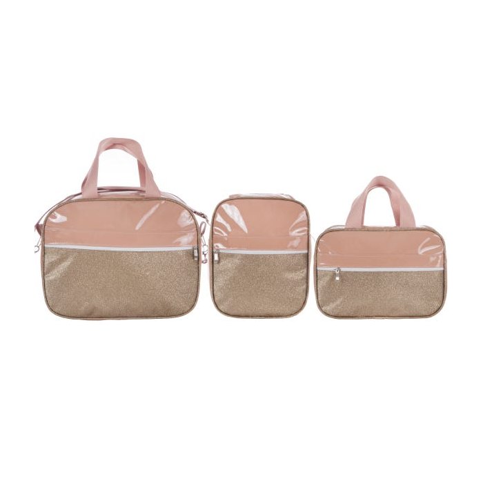 Kit Bolsa Bebê 3 Peças Grande, Média e Mochila Luxo Medalha: ROSE