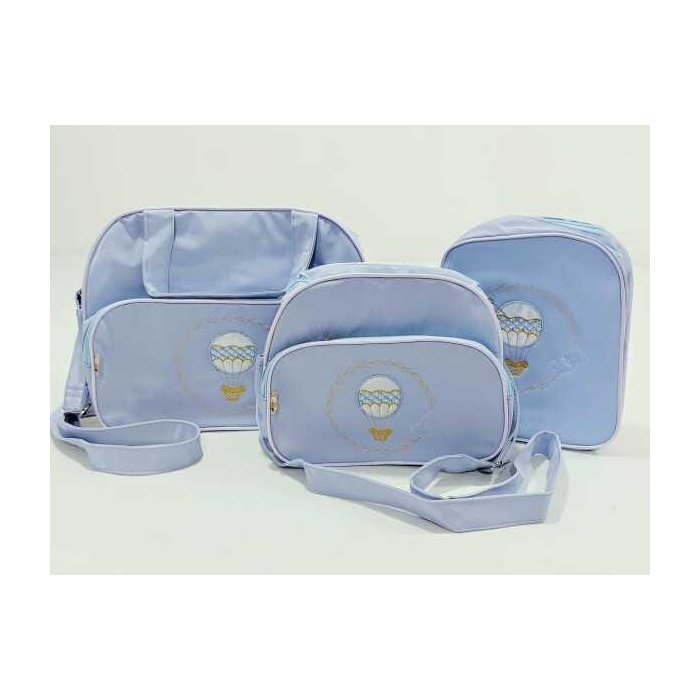 Kit Bolsa Maternidade Balões - Bordada - 03 Peças - Tecido Impermeável - Mappyng Baby