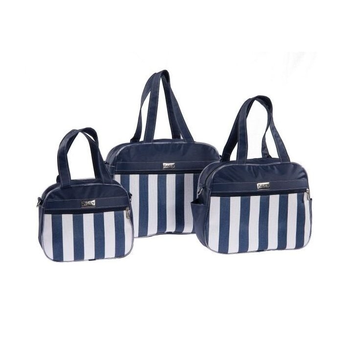 Esse lindo e charmoso conjunto de bolsas maternidade é indicado para todas as mamães. A bolsa é recomendada para as mamães de bebês mais novos, que precisam carregar mais objetos, roupinhas e produtos de higiene, podendo ser utilizada em passeios mais longos, possui alça de mão, alça transversal removível, um bolso frontal com zíper, dois bolsos laterais e amplo espaço interno impermeável. A frasqueira é ideal para a mamãe utilizar em passeios curtos, possui alça de mão e interior impermeável. Veja os outros itens do conjunto pelas imagens