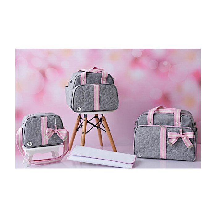 Kit Bolsa Maternidade Cinza Com Rosa IB Luxo