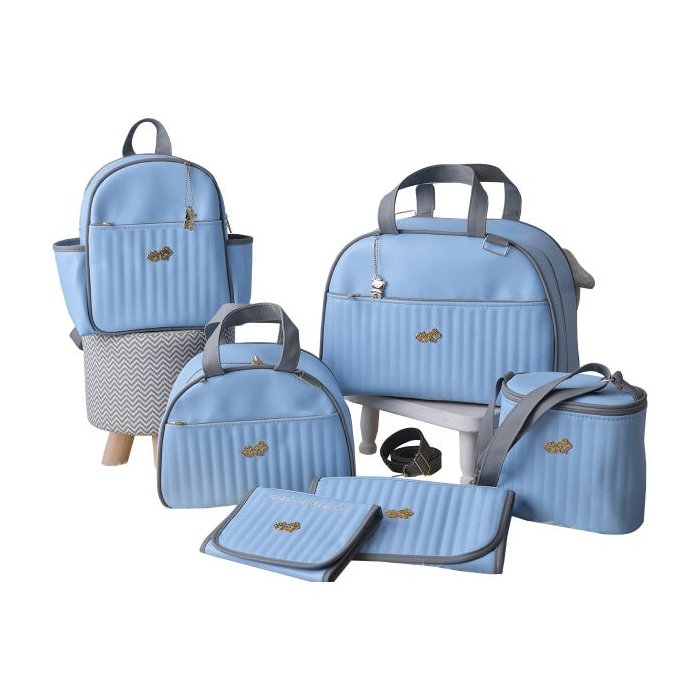 Kit Bolsa Maternidade Coleção Clean Azul Bebê com Cinza.