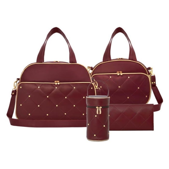 Kit Bolsa Maternidade Elegance Vinho - 4 Peças