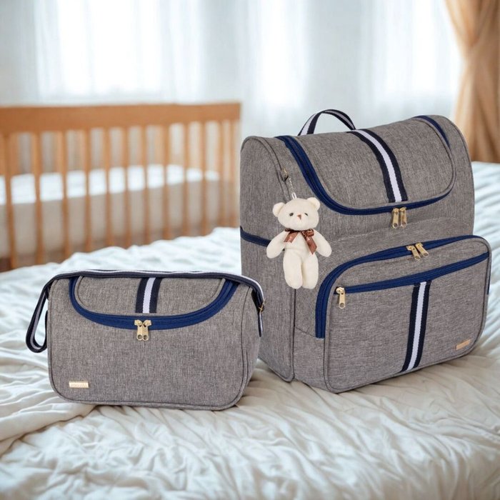 Kit Bolsa Maternidade Mochila 2 em 1 e Bolsa Pequena Infantil Luxo Amor:marinho