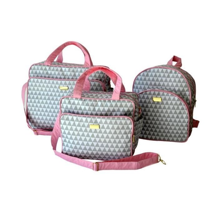 Kit Bolsa Maternidade Rosa 3 Peças Menino Menina Passeio