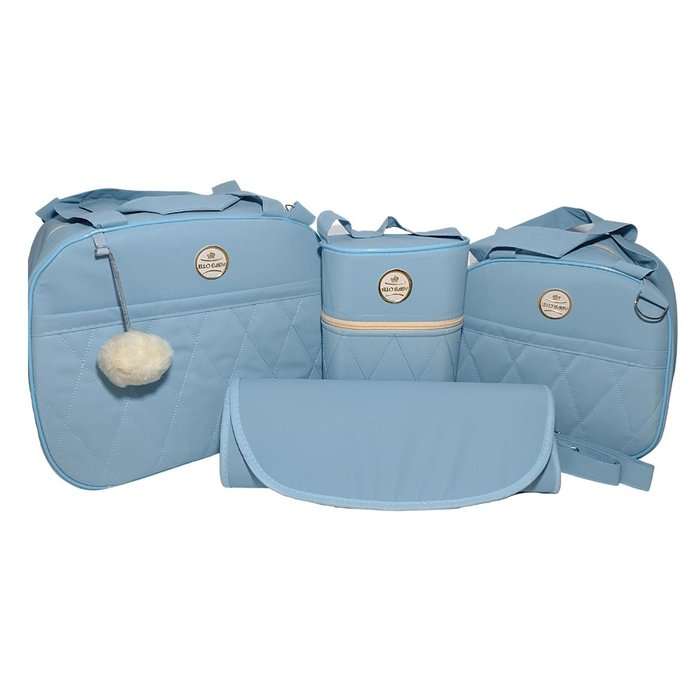 Kit Bolsa Maternidade Unissex Simples 4 peças EB Cor:Azul Bebê Azul Bebê