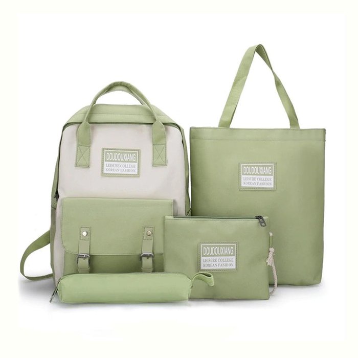 Um Kit composto por uma Mochila, uma Bolsa estilo sacola, uma linda necessaire e um estojo com ziper.