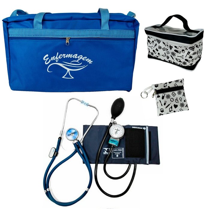 Kit Bolsa Tipo Pasta, Necessaire Retangular, Porta Moedas e Esteto com Esfigmo PA Med Broonell