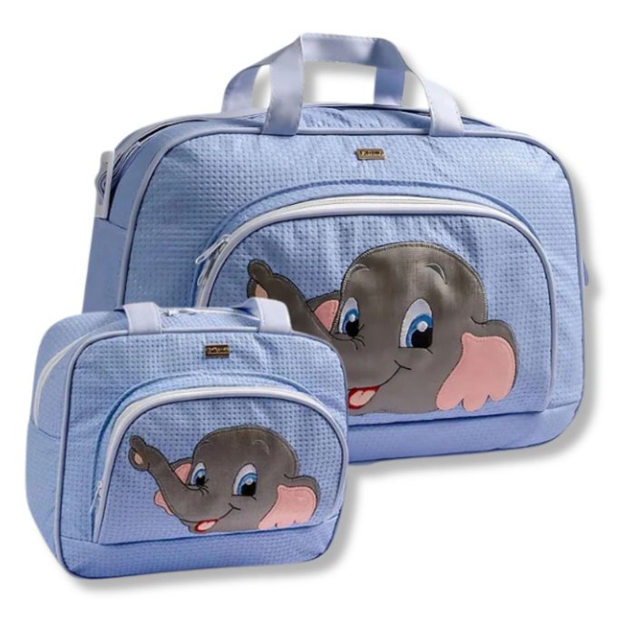 Kit Bolsas Maternidade Trançadinho Elefantinho Azul Bebê