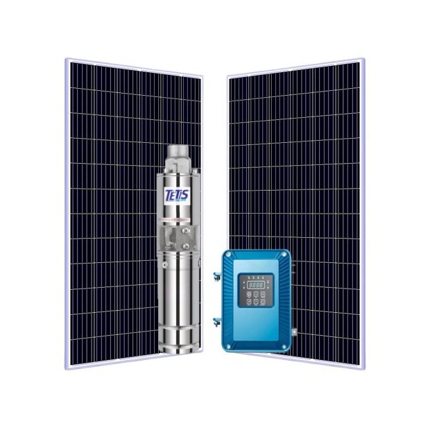O Kit Completo da 3TPS1.7-109-48V/500W pode chegar à 13 mil litros por dia de vazão. Fabricada com materiais resistentes (eixo e corpo em aço inoxidável) e alimentada por um potente motor interno, a linha de bombas movidas a energia solar da Tetis é a solução ideal para sistemas de bombeamento de água. Entre diversos diferenciais, o equipamento possui rolamento duplo TYBC, proteções avançadas e controlador MPPT (que permite maior aproveitamento da energia solar).