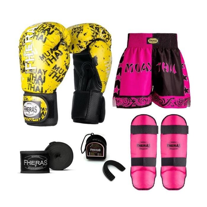 Kit Boxe Muay Thai Fheras Top Grafite Amarelo (03001617) Amarelo