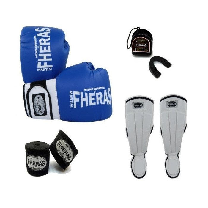 Kit Boxe Muay Thai Fheras Luva, Bandagem, Bucal: