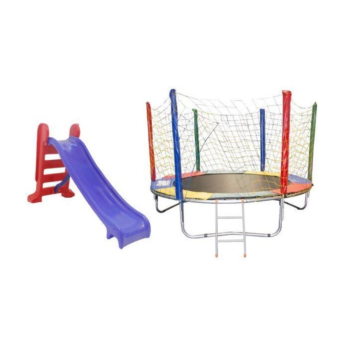 Kit Cama Elástica 1,40m + Escorregador Médio 3 Degraus – Diversão completa em casa