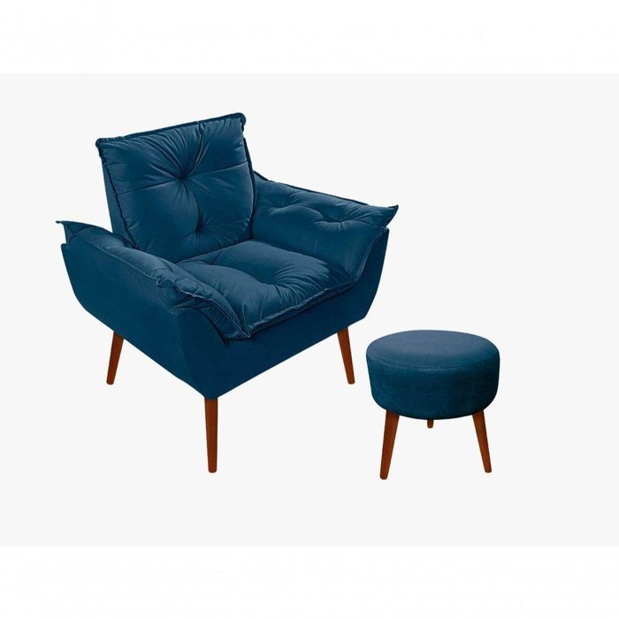 Kit C-01 Poltrona Opala + 01 Puff Redondo Danny Suede Azul Marinho