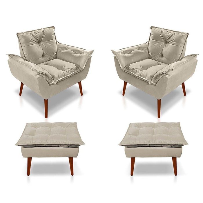 Kit C/02 Poltronas Opala + 02 Puff Opala Elegante Suede Bege