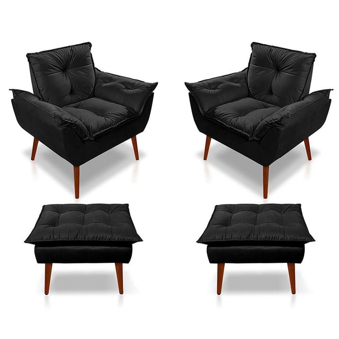 Kit C/02 Poltronas Opala + 02 Puff Opala Elegante Suede Preto