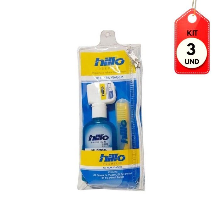 Kit C/03 Hillo Kit Viagem Escova + Fio Dental 25m + Gel Dental 60g