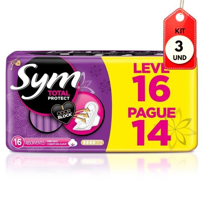 DESCRIÇÃO:Absorvente Cobertura Suave com Abas SYM oferece maior segurança e conforto.AÇÃO/ATIVOS:Possui cobertura ultra suave, barreiras protetoras que impedem o vazamento e canais de rápida absorção que evitam o contato do fluxo com a sua pele, mantendo você duplamente segura durante o período menstrual. Imagem meramente ilustrativa. O produto pode ter variação de cor ou desenho, porém as características gerais são as mesmas especificadas na descrição do produto.MODO DE USAR:Retire a fita central. Fixe o absorvente na calcinha. Retire as fitas das abas, dobre-as para baixo e fixe-as na calcinha.ESTE ANÚNCIO CONTÉM: 03 UNIDADES DE SYM ABSORVENTE SUAVE C/ ABAS C/16Kit C/03 Sym Absorvente Suave C/ Abas C/16