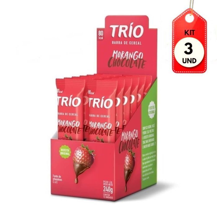 Kit C-03 Trio Barra Cereal Tradicional Morango Chocolate C-12