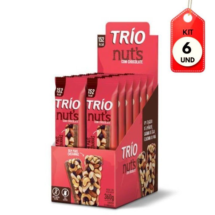 Kit C/06 Trio Barra Nuts Castanha C/ Chocolate C/12