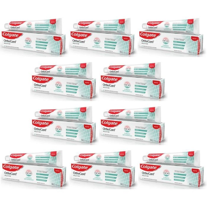 KIT C/10 unidades de CREME DENTAL ORTHOGARD 90G COLGATE O Creme Dental Colgate Orthogard contém 3 vezes mais fluoreto de sódio que é liberado gradualmente para uma boca protegida por muito mais tempo e a solução ajuda a prevenir manchas brancas e cáries. Benefícios: - Oferece proteção especializada que ajuda a prevenir manchas brancas, descalcificação e cáries; - Sua apresentação líquida, ajuda a espalhar mais rápido o flúor, trazendo mais saúde para a sua boca; - Fórmula com 3x mais flúor.