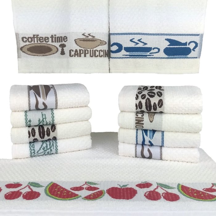 Kit C/ 10 Toalhas De Cozinha / Pano De Copa Prato Felpudo/Atoalhado - Jacquard - 100% Algodão - 45x7