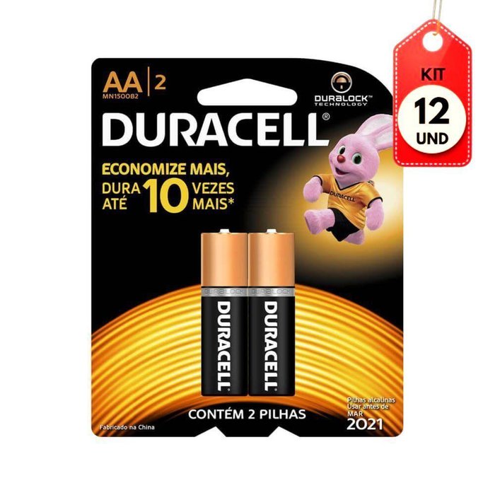Kit C/12 Duracell Pequena Pilha Aa C/2