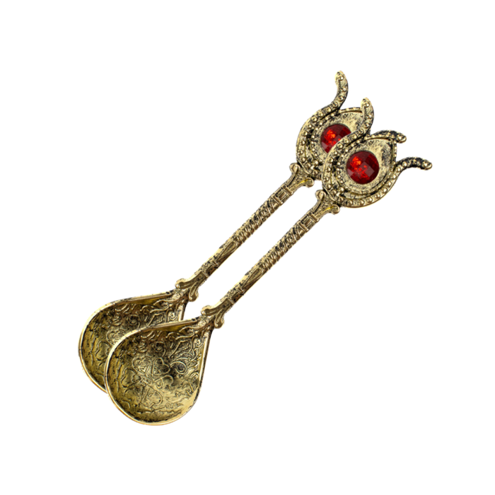 Kit C/ 2 Colher Turca da Fartura Dourada e Vermelha em Metal