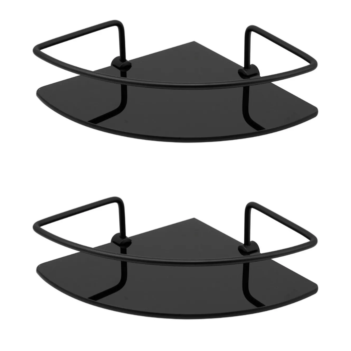 Kit C/ 2 Porta Shampoo de Canto Preto com Vidro Fumê